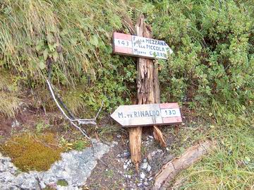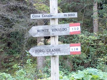 | ...verso quota 2000 il bosco si apre e si passa sulla sponda opposta... | ...un cartello indica la possibilitą di deviare per il Carro (sentiero quasi invisibile, evidentemente non ha grande partecipazione...) |