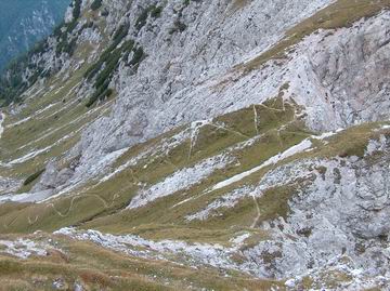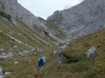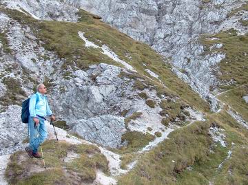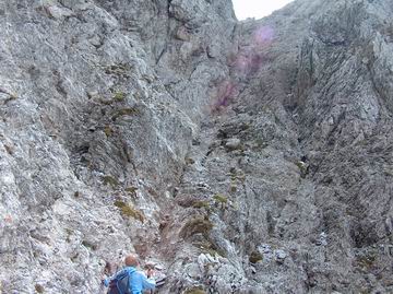 | ...sopra di noi la Forcella Grande... | ...uno sguardo indietro-verso ovest: il Curič e Costalta... |