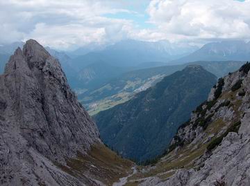 | ...qualche passaggio rischioso affrontato, la non certezza che la cima sia a qualche decina di metri (accertato poi che stava invece lą) ci induce a fermarci. Peccato...ma a volte meglio un po' di delusione che il rischio. Ci riproveremo con l'esperienza acquisita e un po' pił di sicurezza... | ...ci accontentiamo di uno sguardo verso la Val Visdende-Costa d'Antola. |
