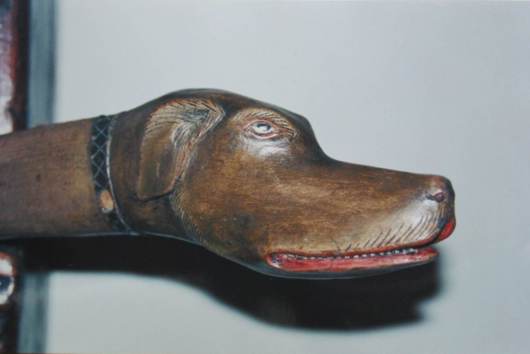 Fodero porta falce in cirmolo dipinto (particolare)