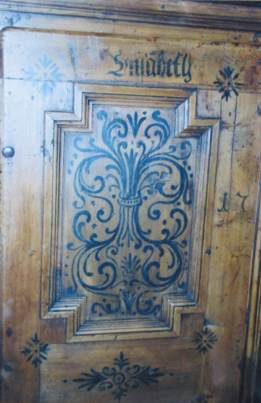 Armadio in cirmolo con disegni in nero - particolare